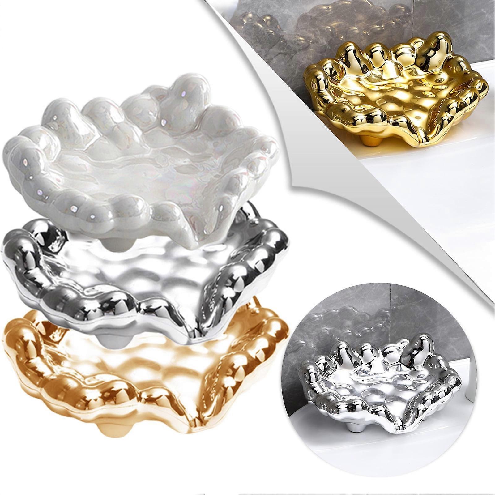 SUSUchens Soap Box Electroplate Convenient Punch Free Storing Cloud Shape Keep Tidy Soap Storage Dish Bathroom Gadget Daily Use
