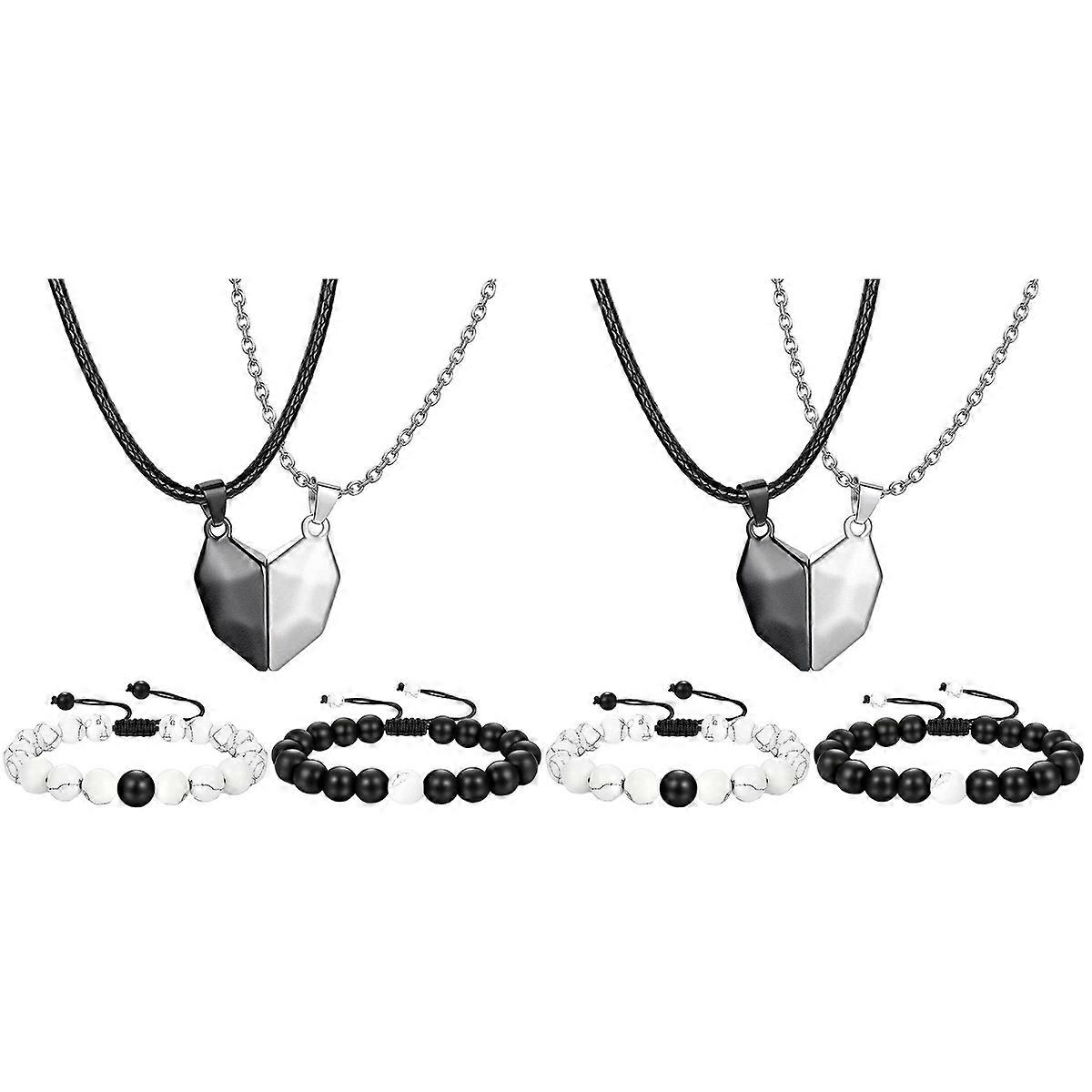 2 Sets Couples Heart Magnetic Pendant Necklace Heart Pendant with Bracelets