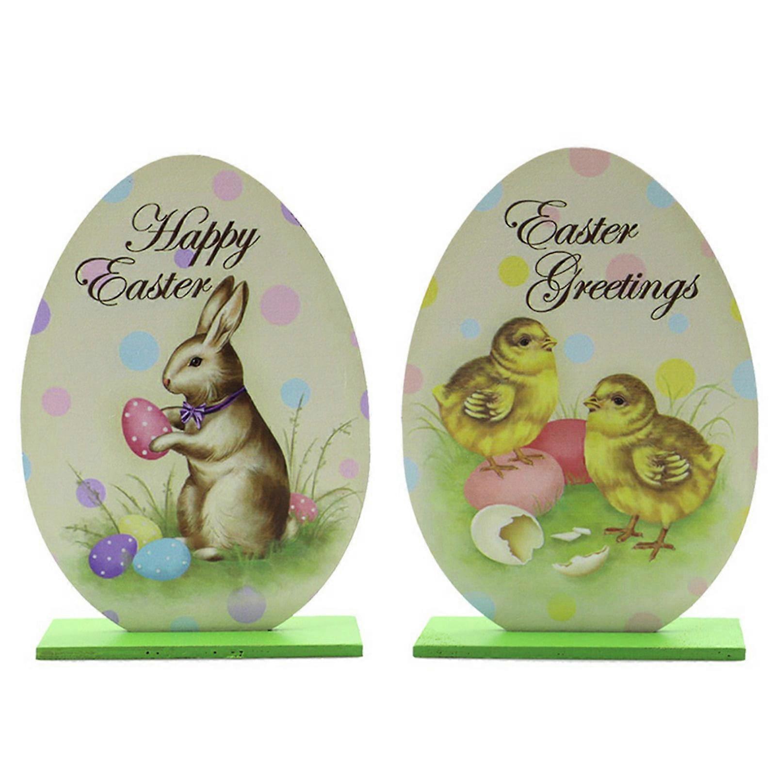 2 Pcs Easter Rustic Wooden Egg Signs, Compatible with Tiered Tray Decor, Easter Table Centerpiece, Indoor Tabletop Decoration