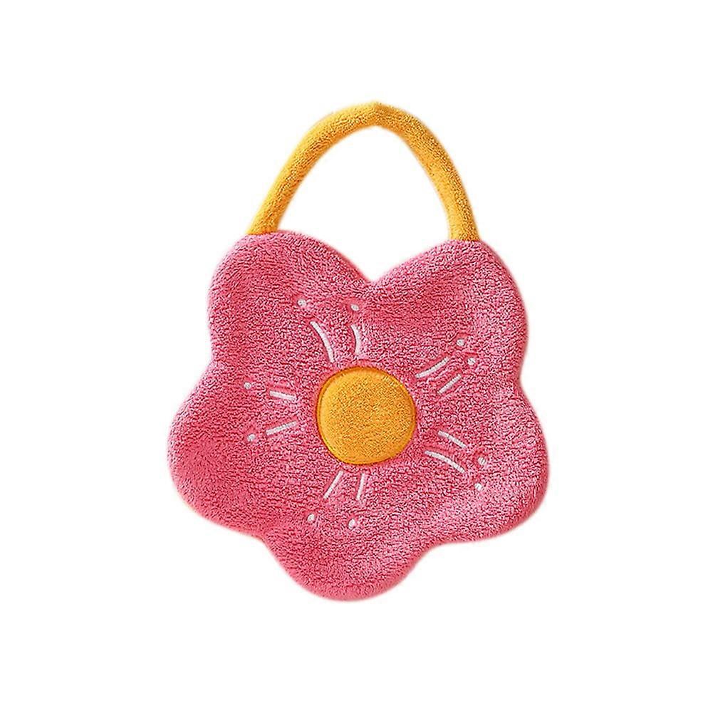 10.6x7.9 inch Hand Towels with Hanging Loop Coral Velvet Hand Towel Cute Flower Shaped Absorbent Handkerchief for Kitchen Bathroom - Rose Red