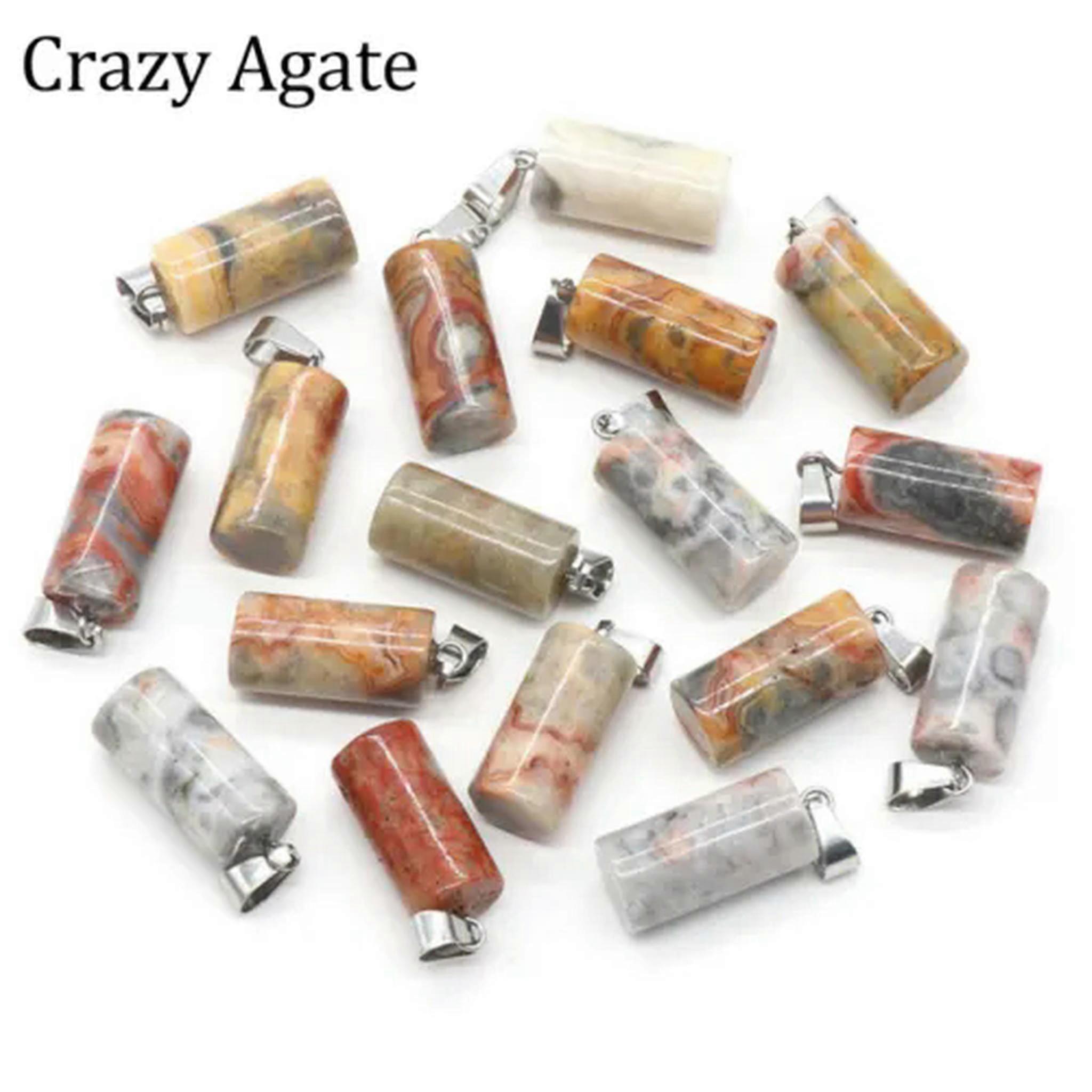 RSAMD 1x Chakra Natural Stone Crystal Cylinder Pendant Bead 10x20mm for Jewelry Making-1PC (Random Pick)-Crazy Agate
