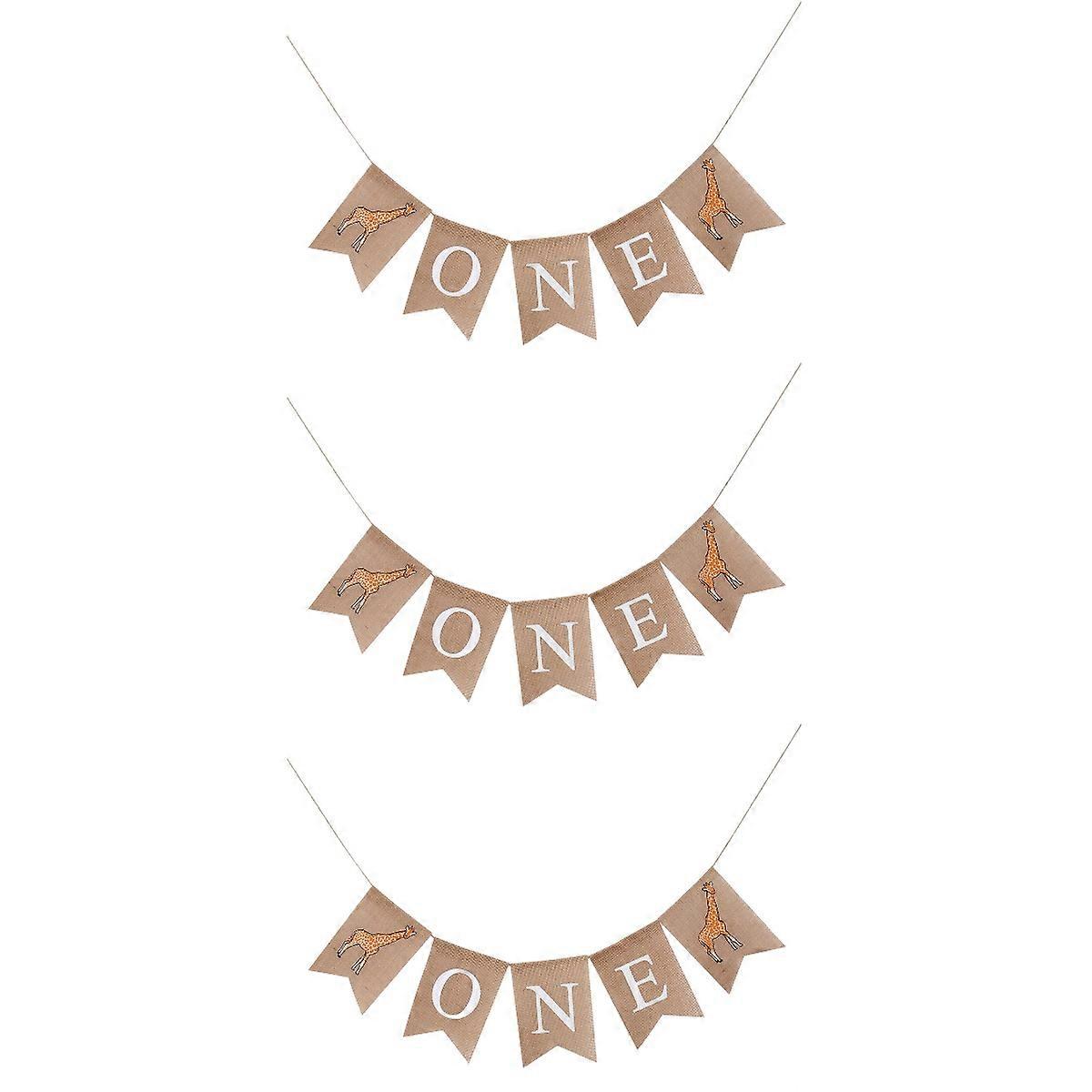 3 PCS Birthday Banner for Baby Hanging Flag Decor Kids Linen Garland Animal Bunting