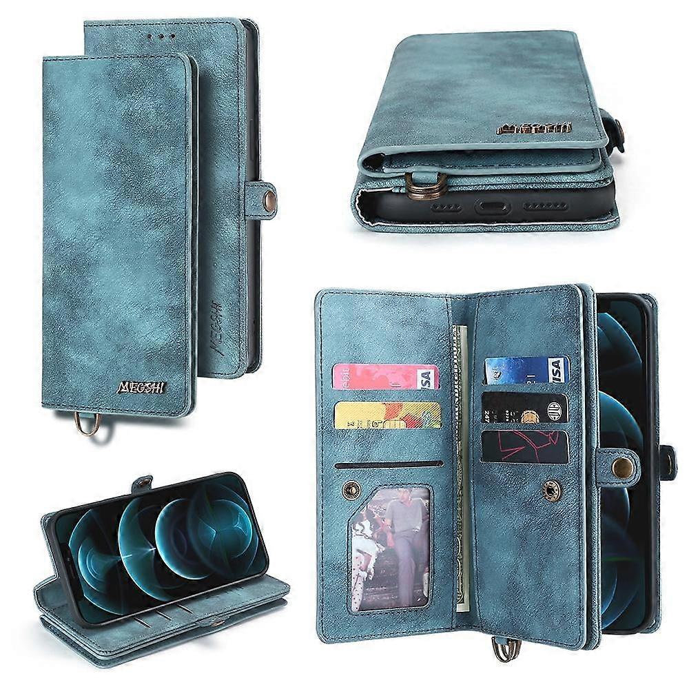 Wallet Case Compatible with iPhone 13/13 Mini/13 Pro/13 Pro Max, 2-in-1 Magnetic Flip Cover with Detachable Wallet, PU Leather, Lanyard, 12 Card