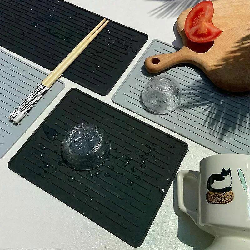 Dish Drying Mats, Heat-resistant Silicone Mat for Kitchen Counter, Dish Draining Tool Non-Slip Dish Dry Mat Dishwasher Safe