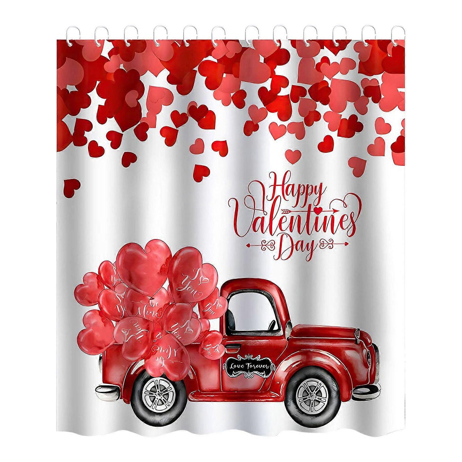 Valentine's Day Shower Curtain for Bathroom, Compatible with XIUH Home Textile, Hearts Lovers Couples Decors, Happy Valentine Holiday (RDC)