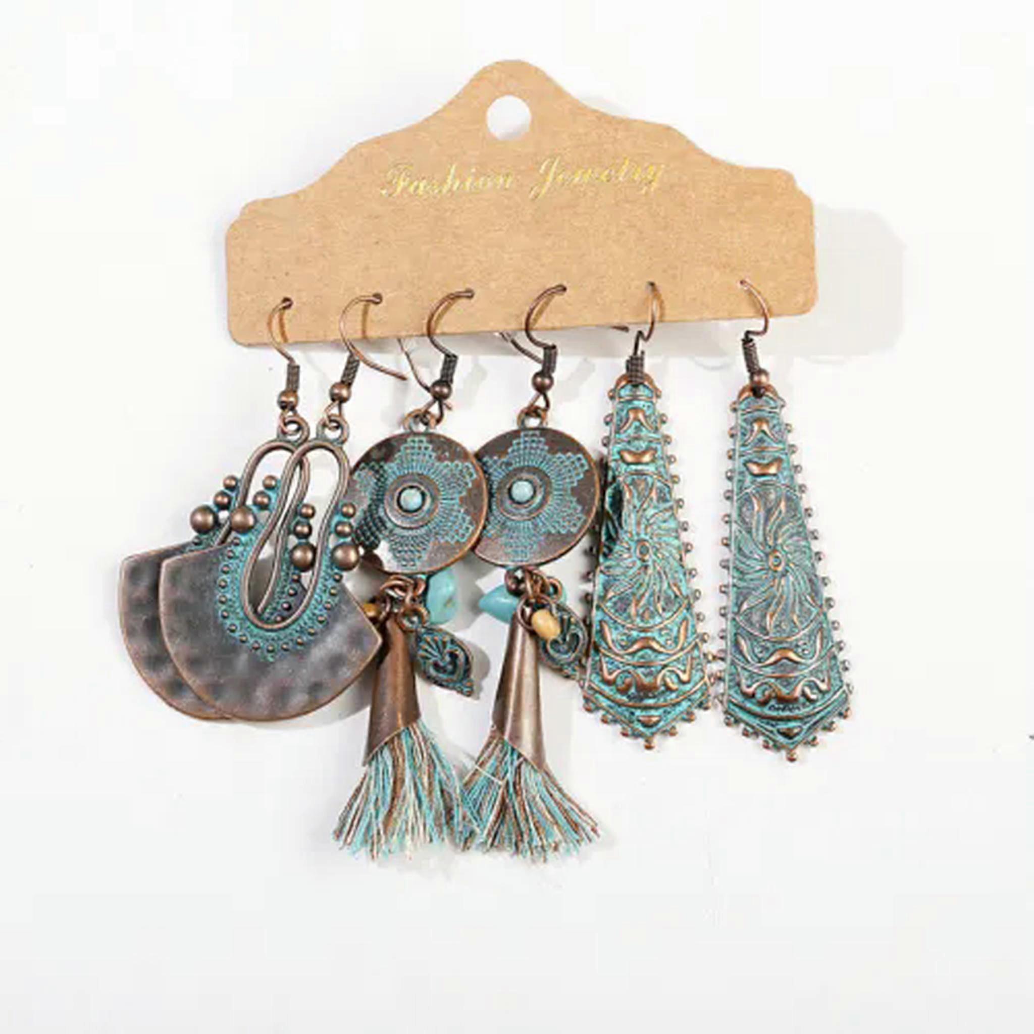 RSAMD Green Turquoise Ethnic Dangle Drop Earrings for Women Vintage Boho Jewelry Set-Style B