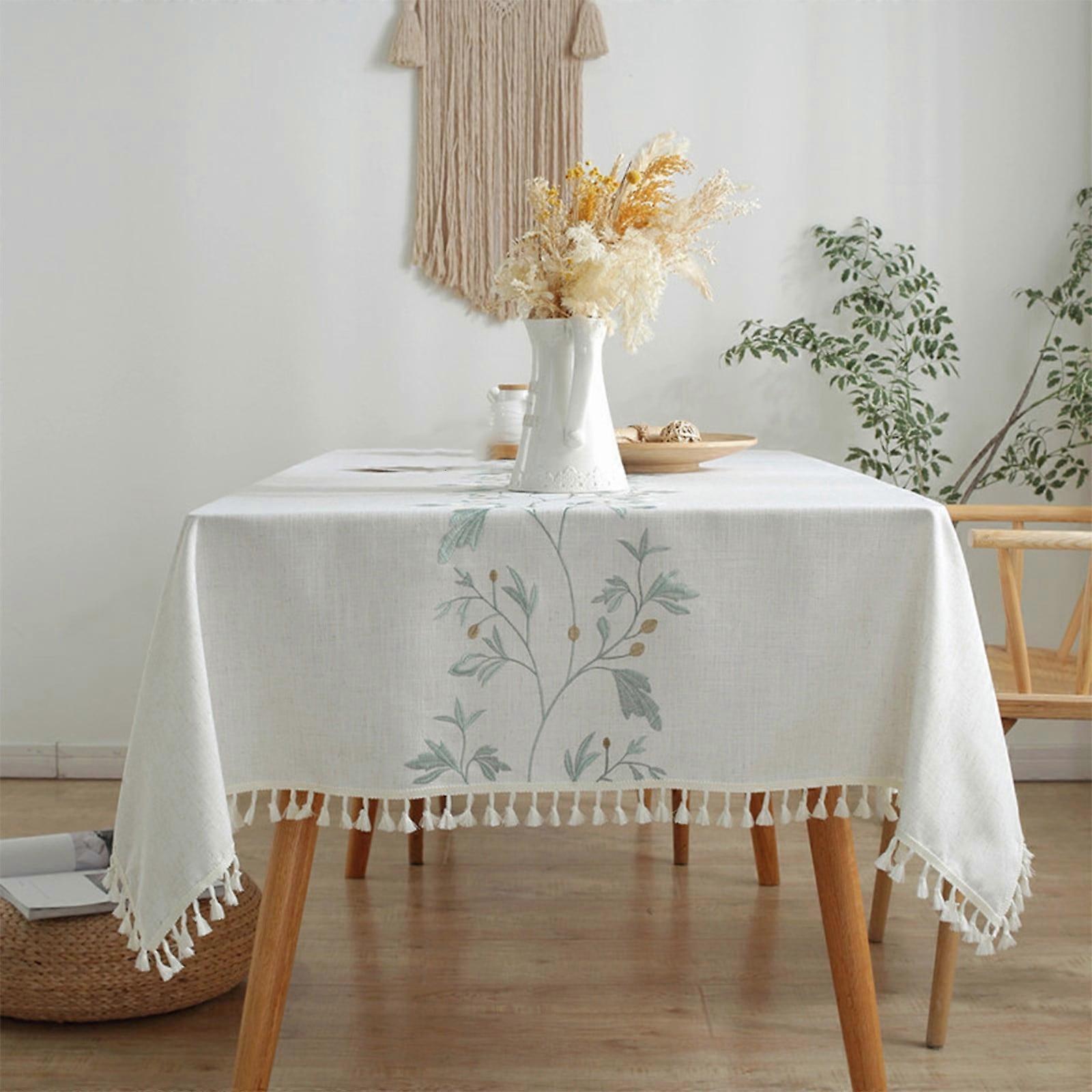 Txmfgh Beige Embroidered Tassel Tablecloth: 140x180cm/200cm Polyester, Stylish and Versatile for Formal and Casual Dining