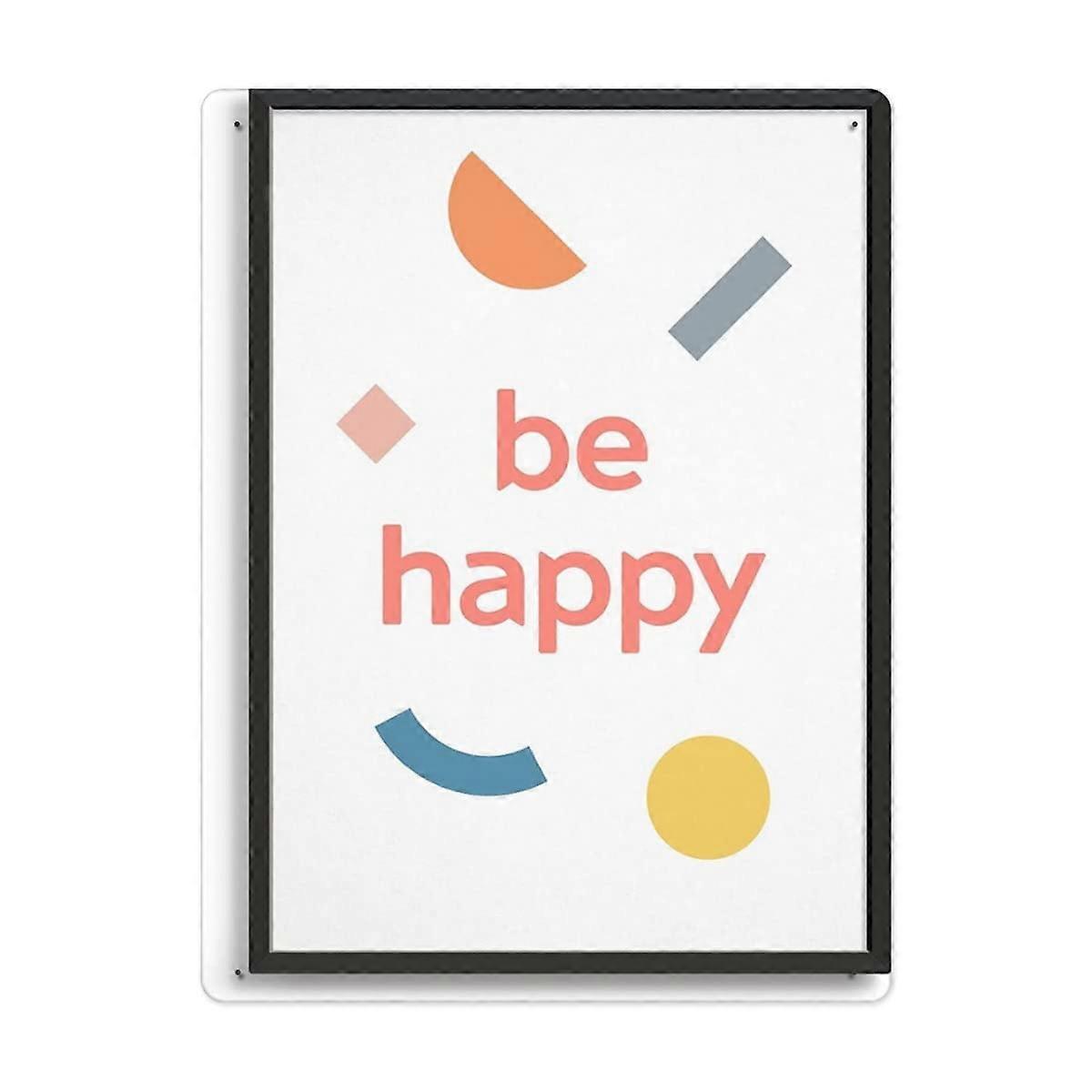 Aluminium Metal Sign: Be Happy Typography, Geometric Abstract Art Print, Inspirational Message, Vintage Wall Decor, 8x12 inch
