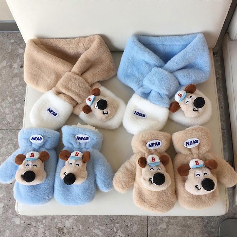 2 Pack New Baby Winter Warm Scarf Cartoon Children's Gloves Shawl Fluffy Thickened Neck Warmer and Gloves Miniso
