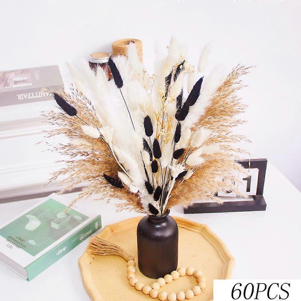 Black White Dried Flowers Reeds Bouquet Gothic Style Halloween Home Arrangement Nature Pampas Grass Festival Table Vases Decor