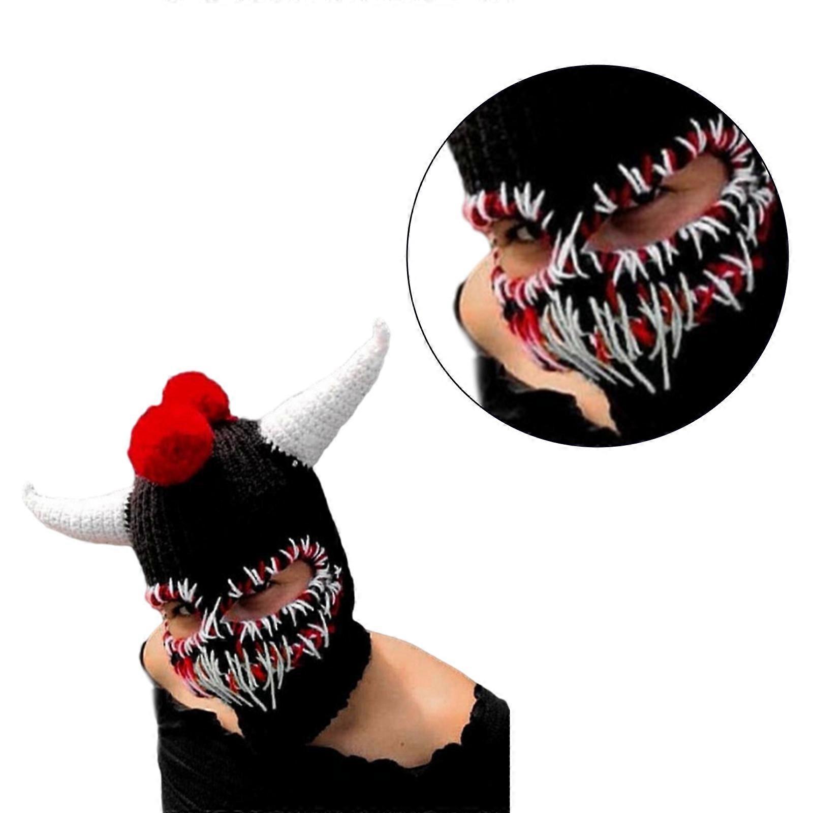 Handwoven Balaclava Hat for Teens Knit Pullover Beanie Cap Cosplay Costume Horn Hat Outdoor Activity Hiking Skiing Cap Multicolor