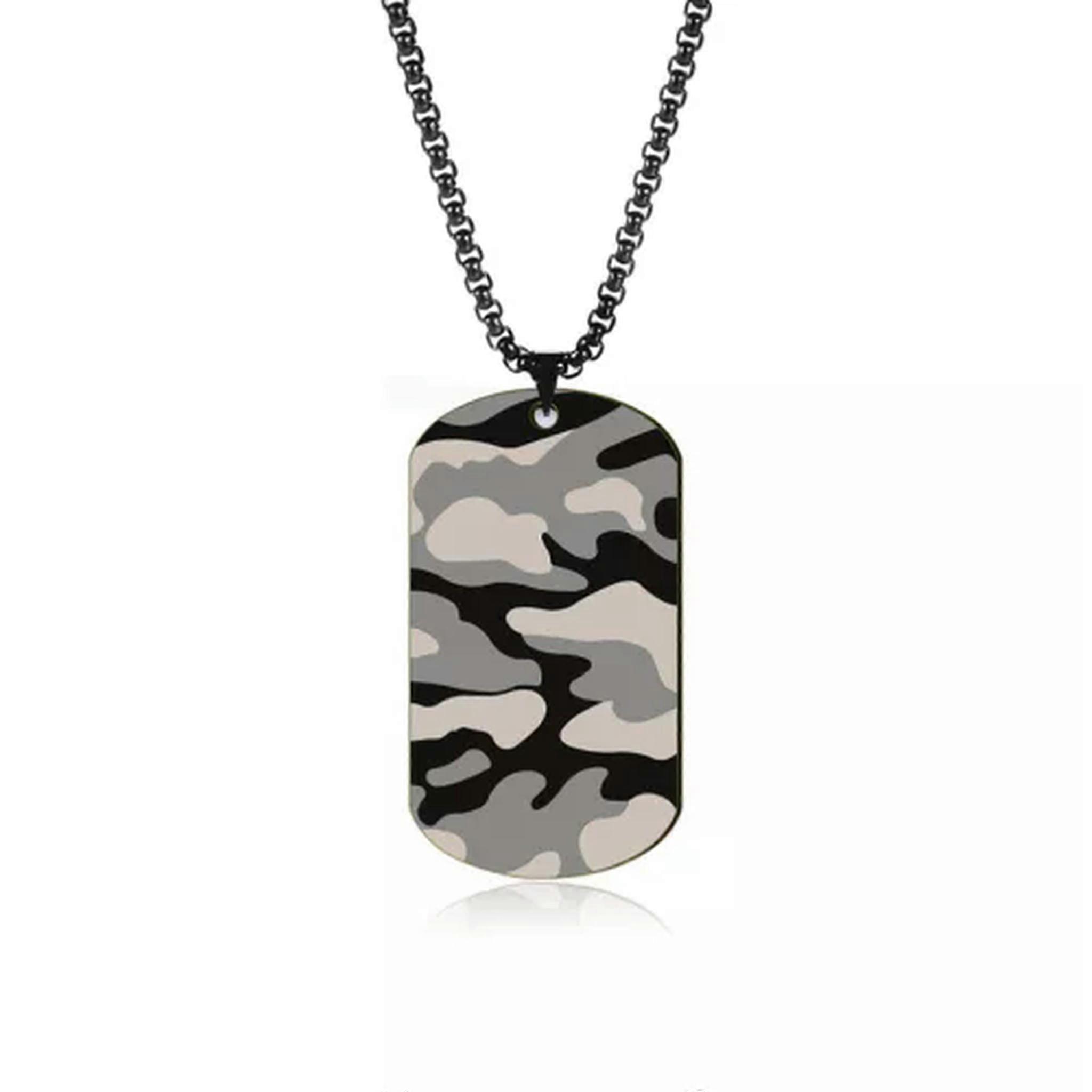 RSAMD Army Soldier Camouflage Pendant Men Necklace Dog Tag Stainless Steel Box Chain-Black-60cm