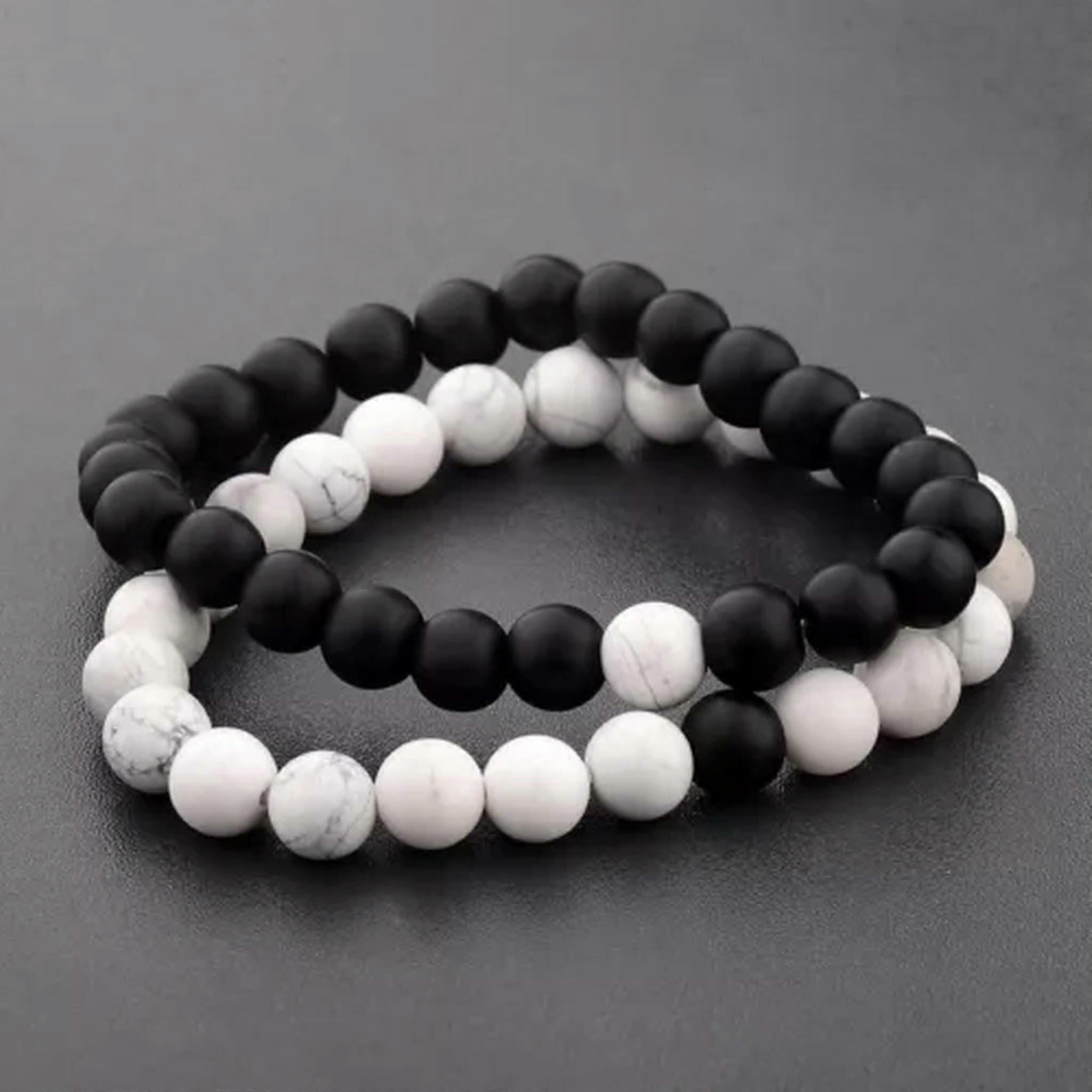 RSAMD Distance Couple Bracelet For Women Men Handmade Black&White Stone Beads Yoga Ene-Rhodium Plated-China Welcome to our jewelry emporium that's brimming with dazzling options for every style seeker. For the lovely ladies, we have an array of enchanting pieces. From the dainty necklaces that delicately adorn your collarbone to the elaborate rings that make a bold statement. There are bracelets that add a touch of grace and earrings that enhance your beauty. But don't think we've forgotten about the gentlemen! We have a selection of masculine and stylish accessories too. Sturdy rings for a touch of rugged charm, sleek bracelets that exude sophistication, and understated necklaces that add a hint of refinement. Our collection combines timeless classics with modern trends, crafted with precision and using top-quality materials. Whether you're looking for a piece to wear on a daily basis or for a special event, we've got you covered. So, step into our world of jewelry and discover that perfect piece that reflects your individuality, no matter your gender! Suitable for Gifting Fit for Every Occasion 100% New and of High Quality Crafted from Professional-Quality Materials Easy to Pair and Wearable at All Times and Places