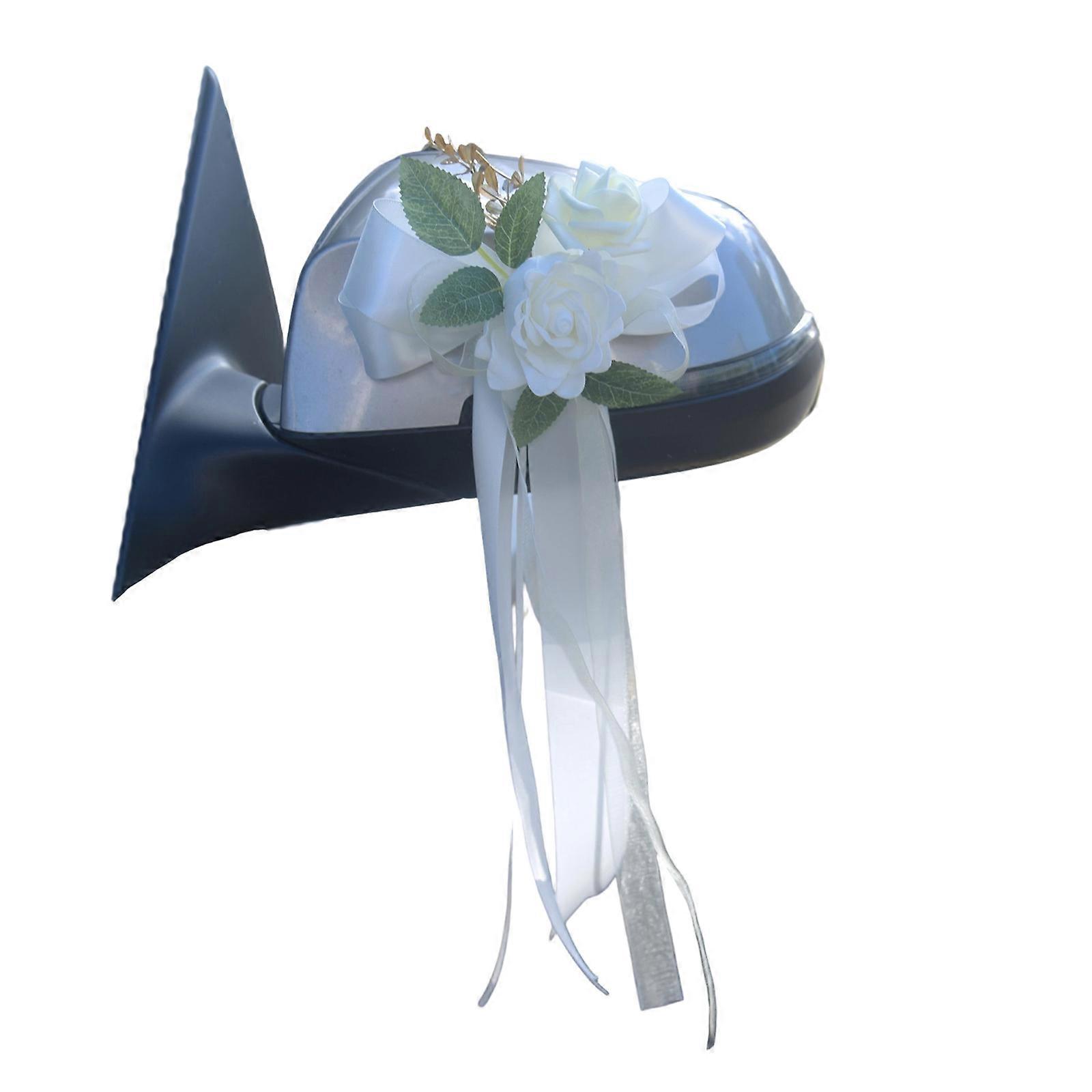 Elegant Car Mirrored Floral Arrangements And Door Bows Decorations For Anniversaries Birthdays Weddings White