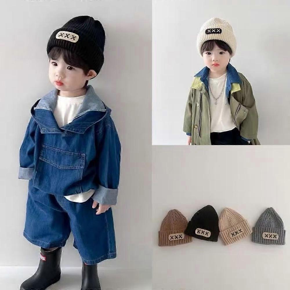 New Baby Knitted Hat Warm Winter Hat with Letter Print Soft Thick Korean Embroidered Hat Kids Gift Autumn Winter Style MINISO