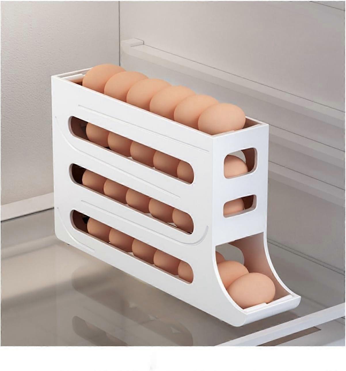 4-Tier Egg Holder for Fridge, Auto Rolling Egg Tray Storage, 30-Egg Container, Space-Saving Egg Roller (Color: White)