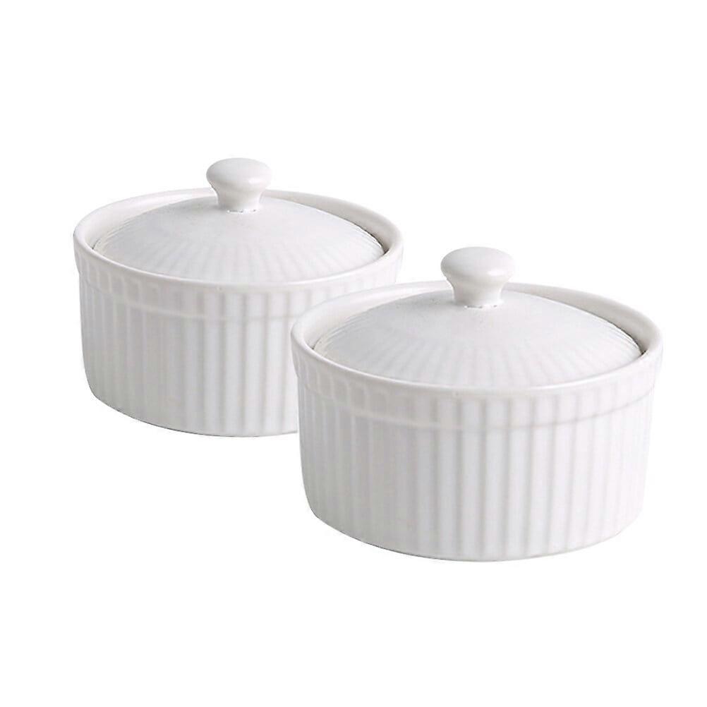 Baking Bowl Dessert Dish Cups with Lids Roasting Pans for Ovens Grill Dishes Porcelain Ramikins Ramekin Bowls 2 PCS