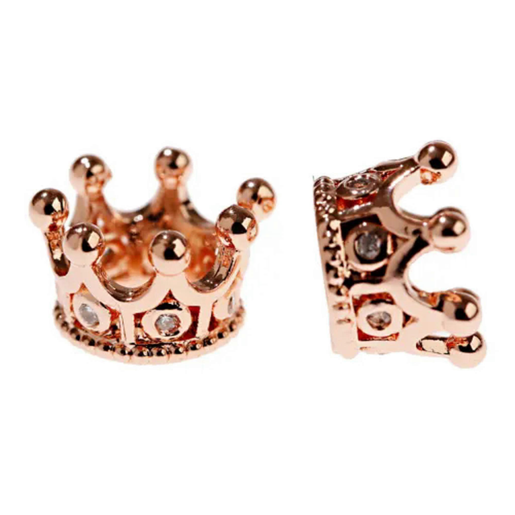 RSAMD Zircon Gemstones Micro Pave Queen Crown Big Hole Bracelet Connector Charm Beads-Clear on Rose Gold-5PCS
