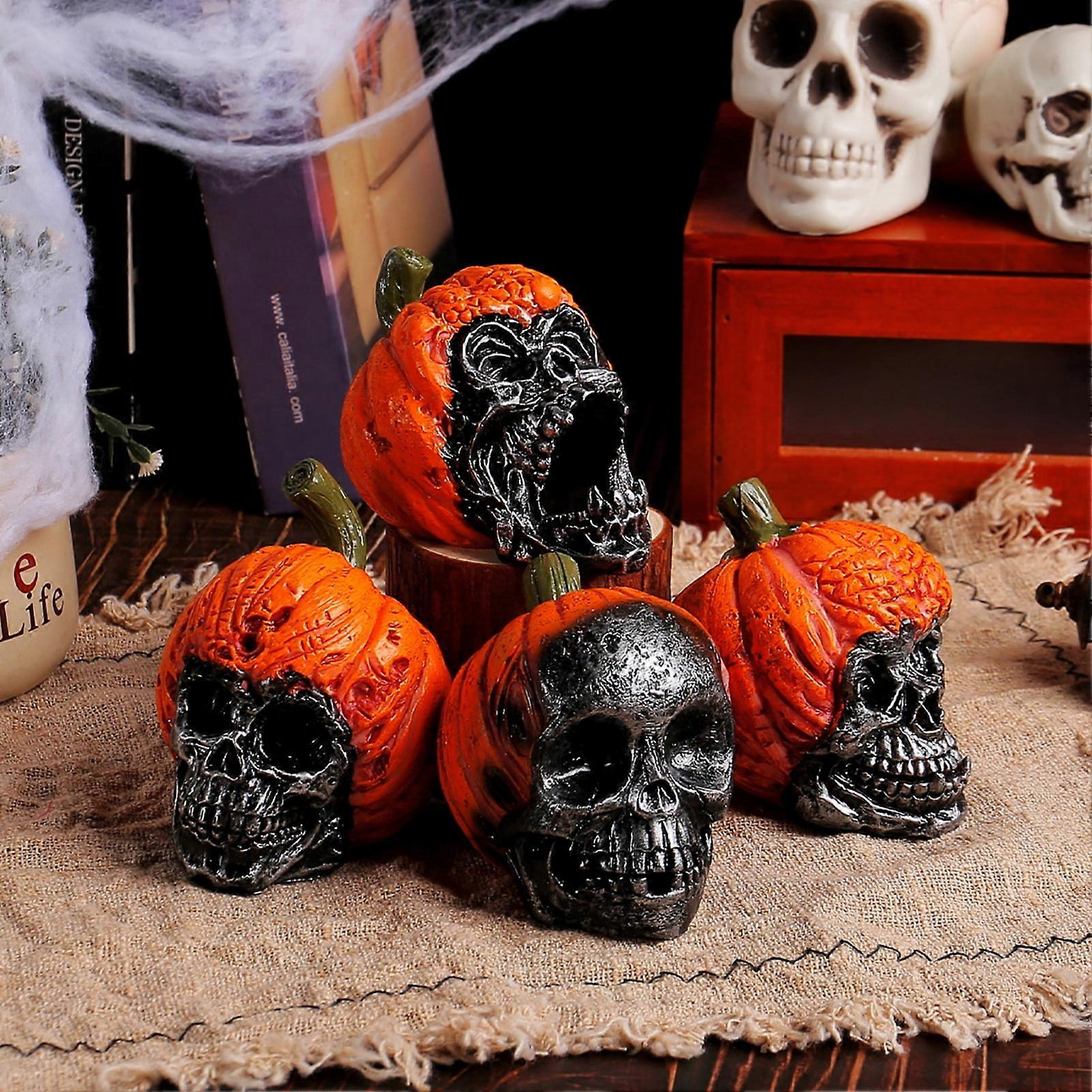 SUSUchens Halloween Resin Ornaments Cute Skull Pumpkin Statue Home Party Festive Atmosphere Enhancer Holiday Decoration Prop Style C