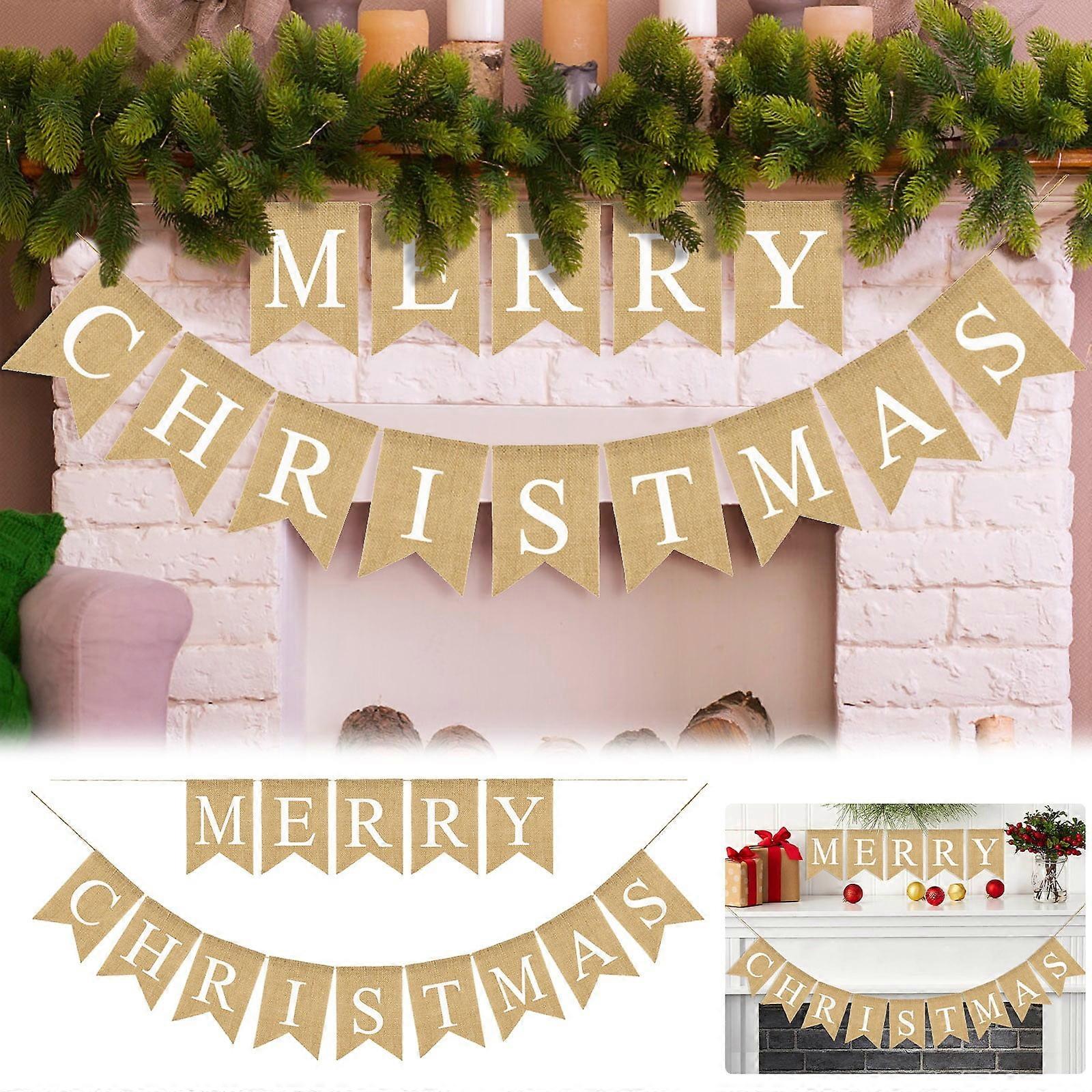 WinysinLinen Merry Christmas Banner Birthday Bunting Garland 2 Pennant Banners Hanging Party Decorations