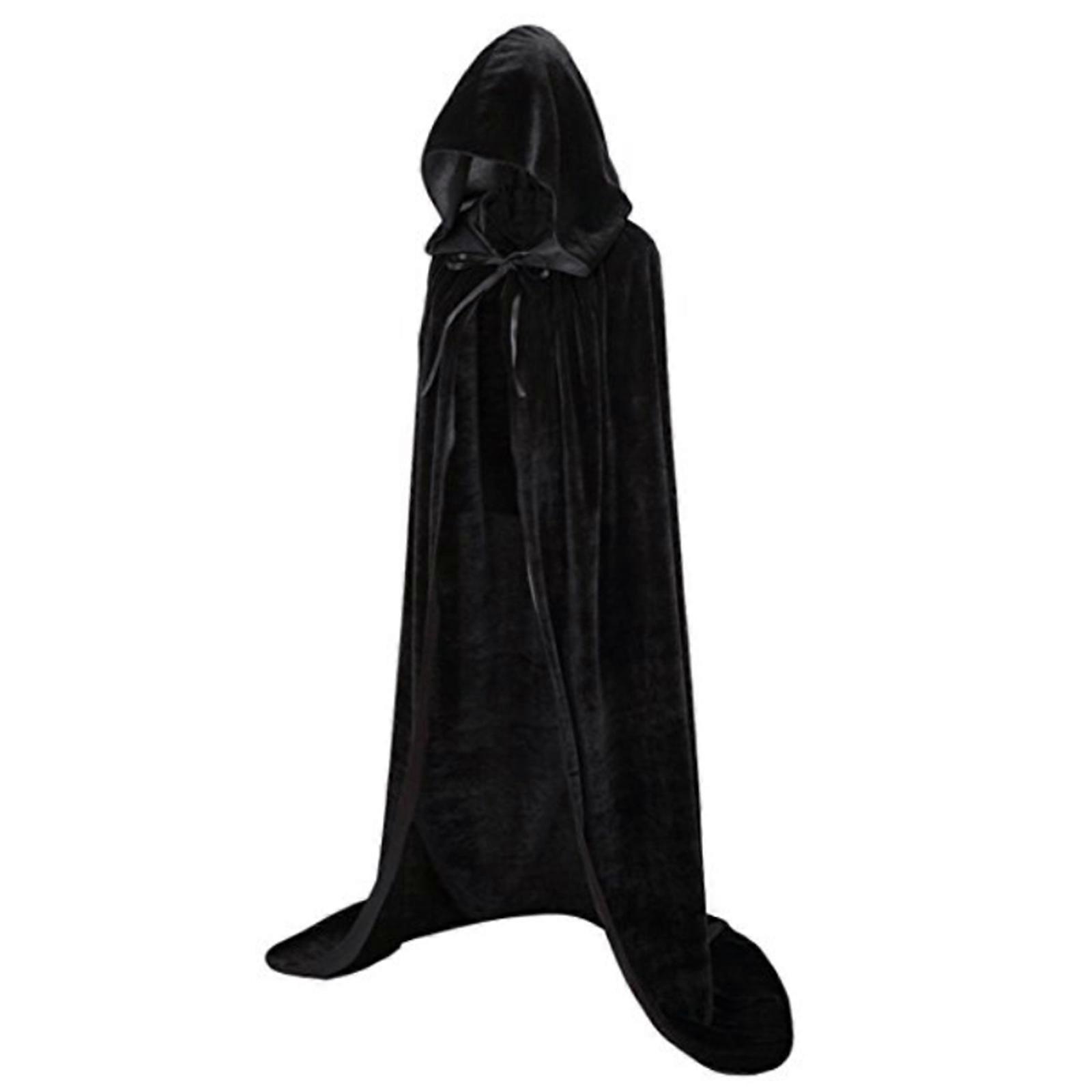 Halloween Cloak Velvet Unisex Hooded Black Robe Witch Long Cape Cosplay Costume Prop Party Performance Supplies Holiday Decorati