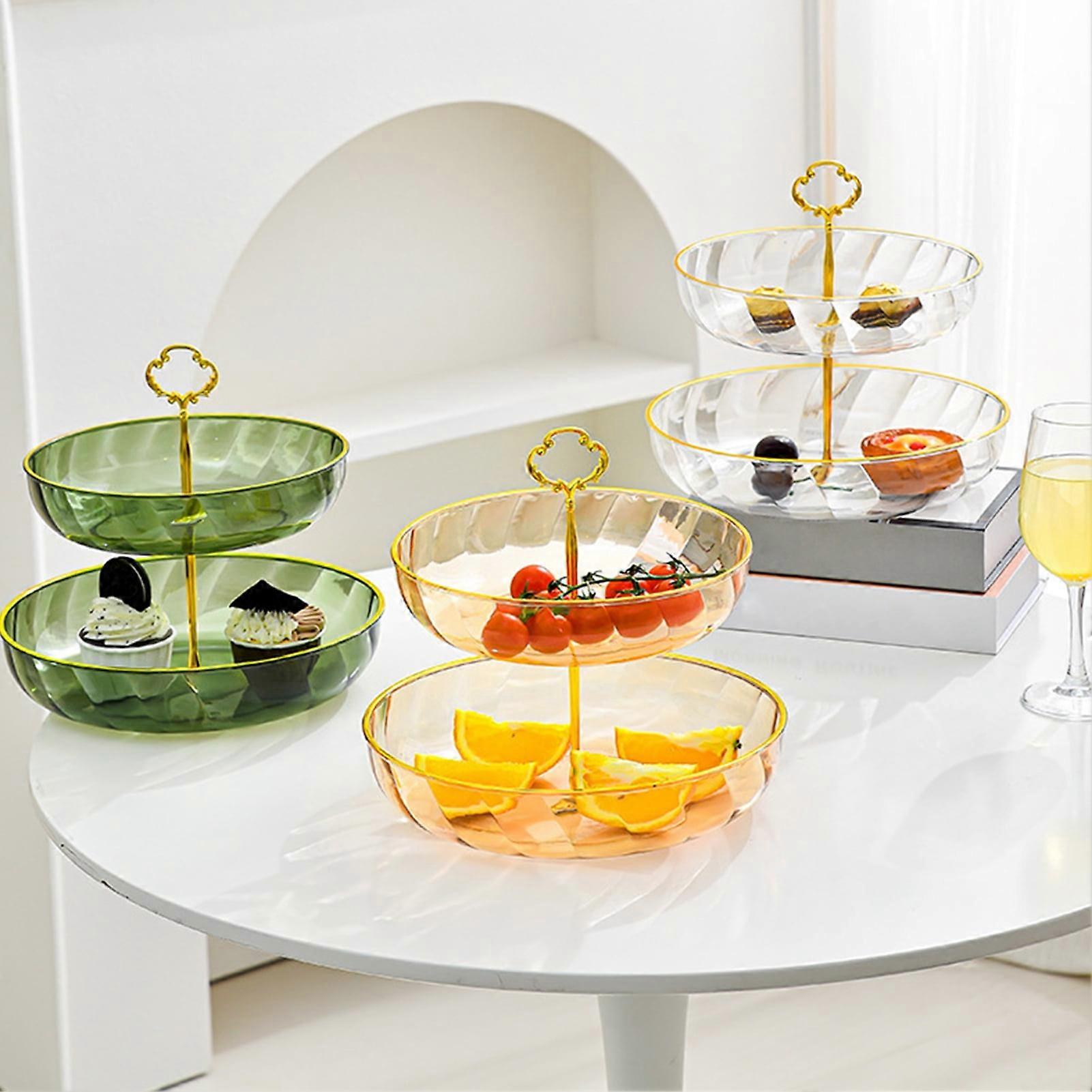SUSUchens Snack Plate Double Layer High Capacity with Handle Light Luxury Simple Round Household Fruit Plate Tray Home Supplies Golden