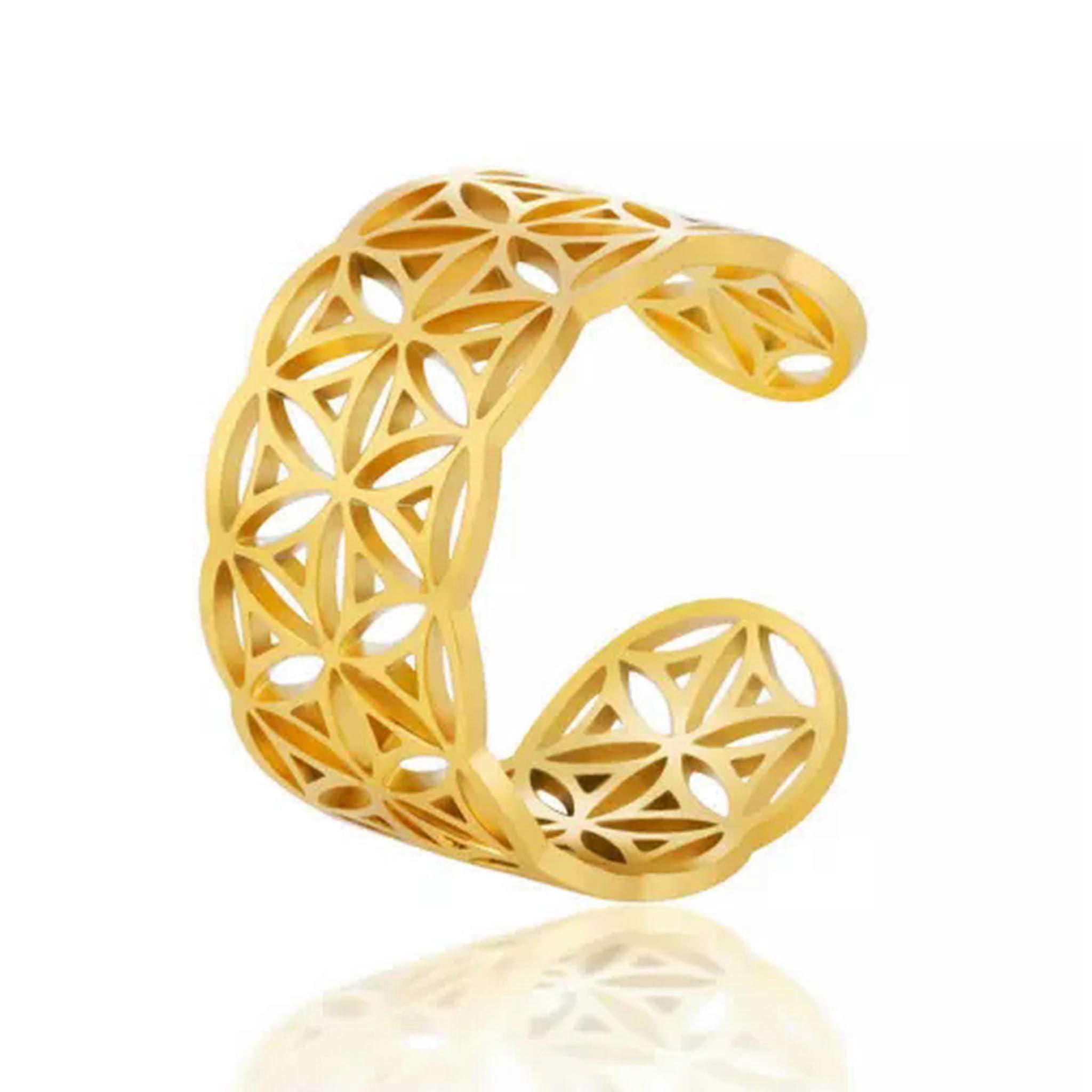 RSAMD Viking Flower of Life Ring Women Stainless Steel Geometric Open Adjustable Rings-Resizable-Gold