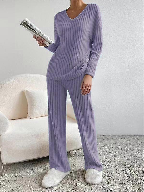 Women's V Neck Long Sleeve Pajama Set, Casual Two-Piece Sleepwear for Fall & Winter, Comfortable Home Clothes for Ladies