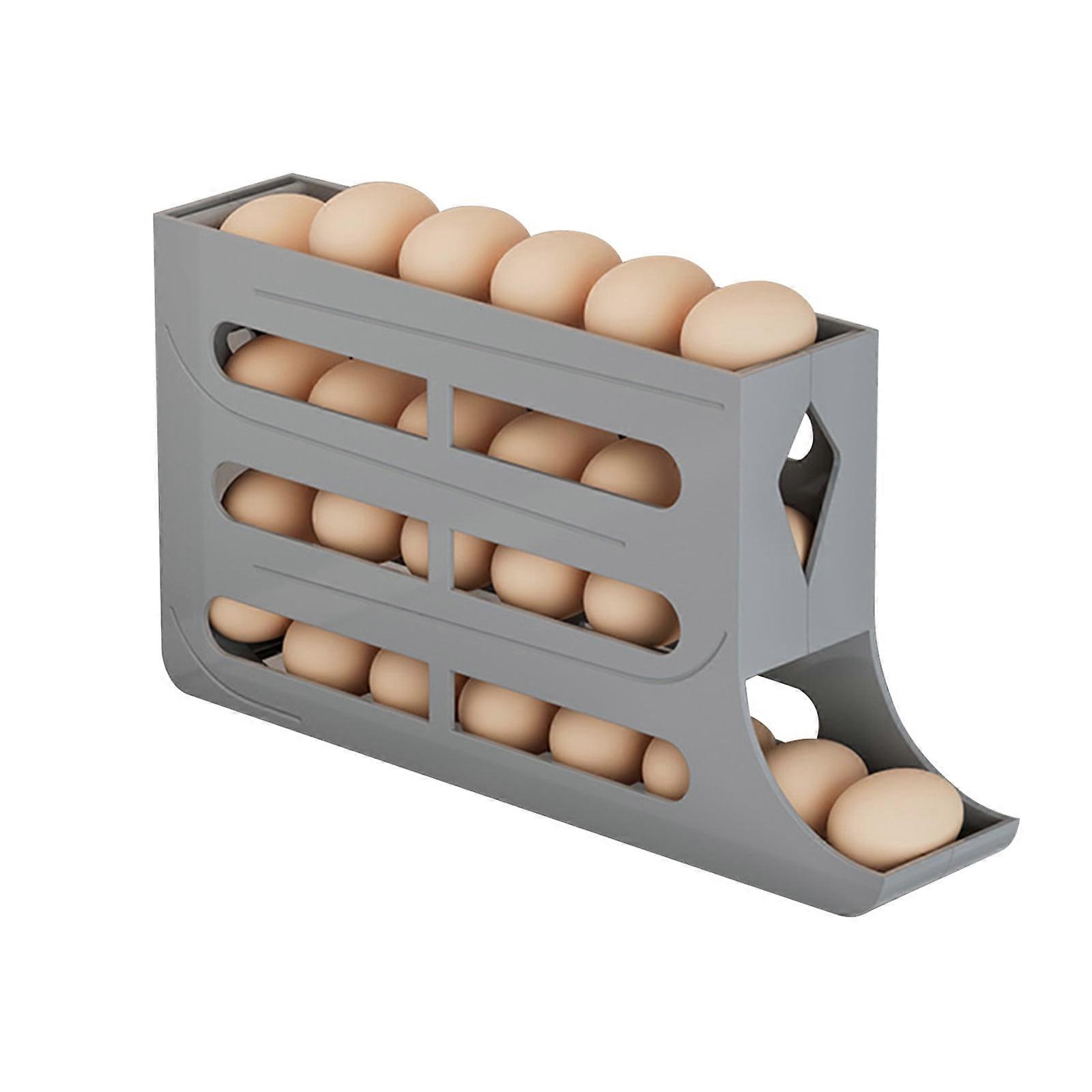 YOBOLK 4-Tier Fridge Egg Organizer, Auto-Rolling, Space-Saving, 30-Egg Capacity, Clearance Closet Design