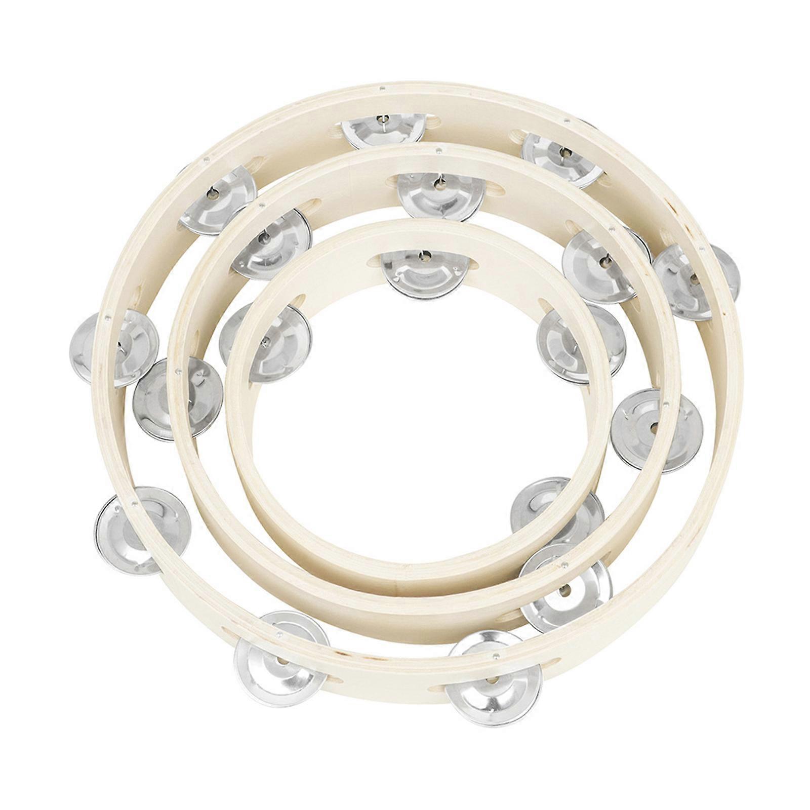 3Pcs Party Tambourines Row Wood Single Rings Musical Craft Toy Bells Handheld Adults Kid Tambourine Bells Metal Bells Multicolor
