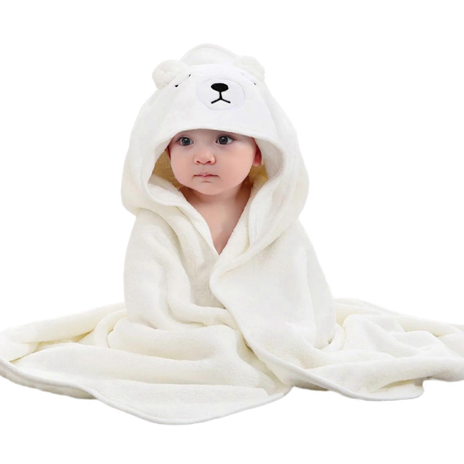 Warm Hooded Baby Bath Towel Capes For Kids Thickened Fleece Plush Absorbent Cartoon Animal Quick Drying Bathing Wrap polar bear