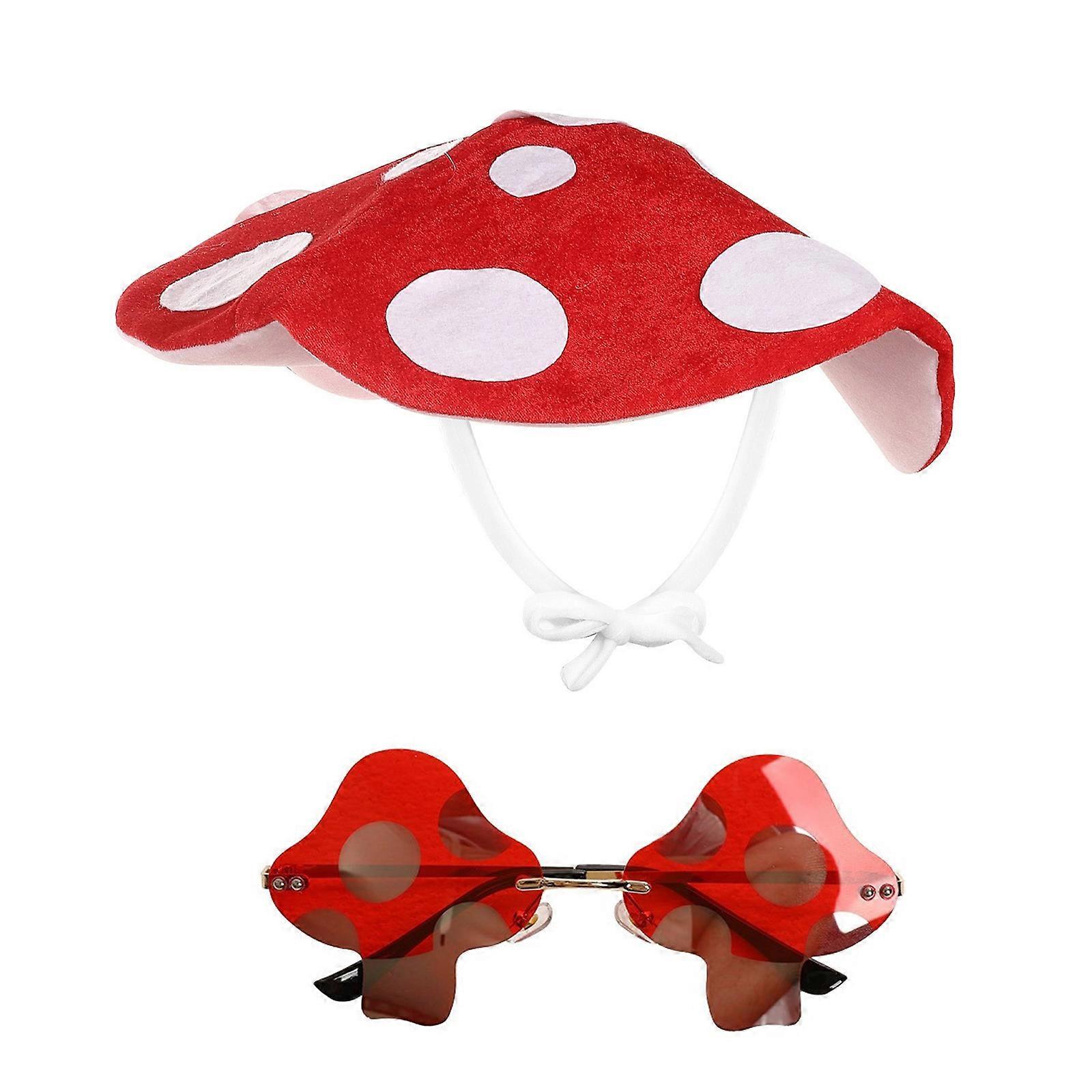 Rimless Mushroom Shape Sunglasses Mushroom Hat Party Hat Cap Mushroom Costume Accessory for Halloween Christmas Party Red