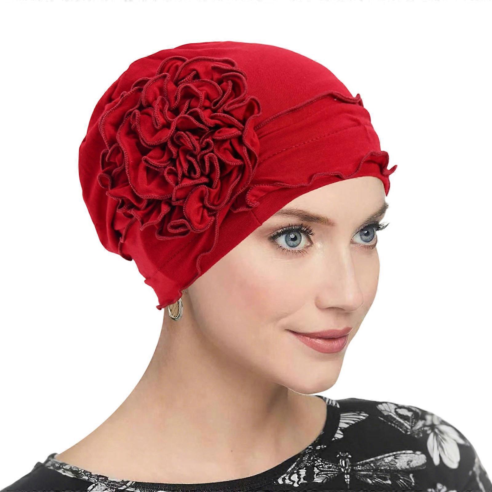 Ventilated Carcinoma Care Headscarf Flexible Polyester Hair Cover With Blossomy Accent For Female Patients Burgundy
