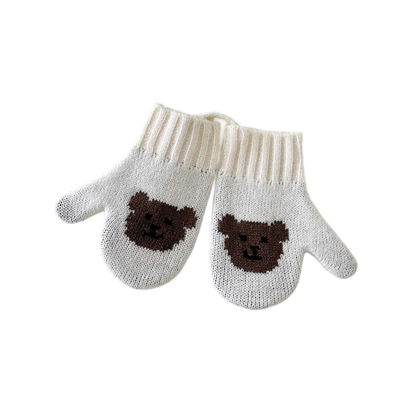 1 Pair Warm Winter Gloves For Toddler 2 to 5 Years Soft Knitting Fabric Mittens Loss Proof Neck Hanging Strap Design White milk