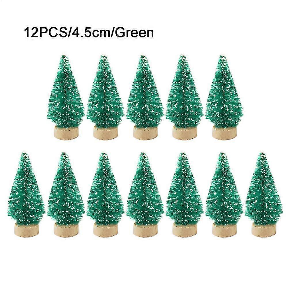 12 Pcs Christmas Tree Mini Pine With Wood Base Wooden Christmas Tree Snow Landscape Xmas Trees Xmas Tabletop Decorative Gifts