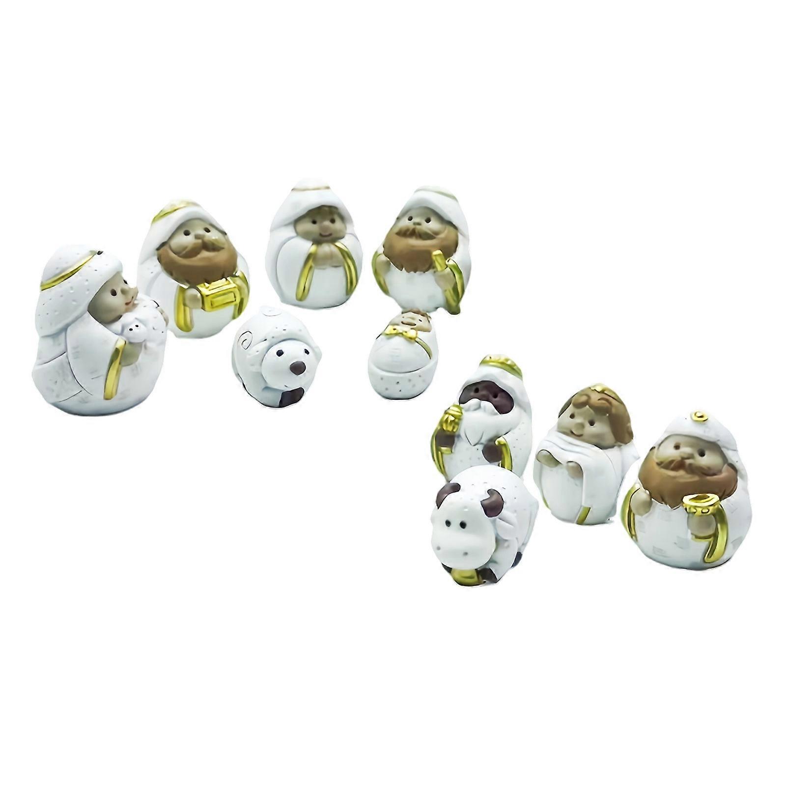 Christmas Manger Nativity Scene Miniature Figurines Ornaments Warm LED Illuminating Set For Indoor Holiday Decors Multicolor