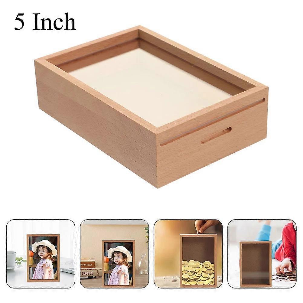 Wood Specimen Frame With Piggy Bank Coin Bank Saving Money Photo Frame Saving Jar Wood Money Jars Desktop DIY Family Frame Box