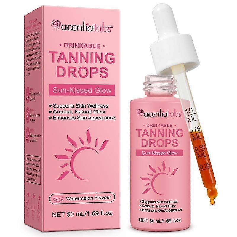 Acentialabs Drinkable Tanning Drops Sun-Kissed Glow 50ml Vegan Watermelon Flavor with Vitamins for Gradual Natural Glow Body Care Daily Drop