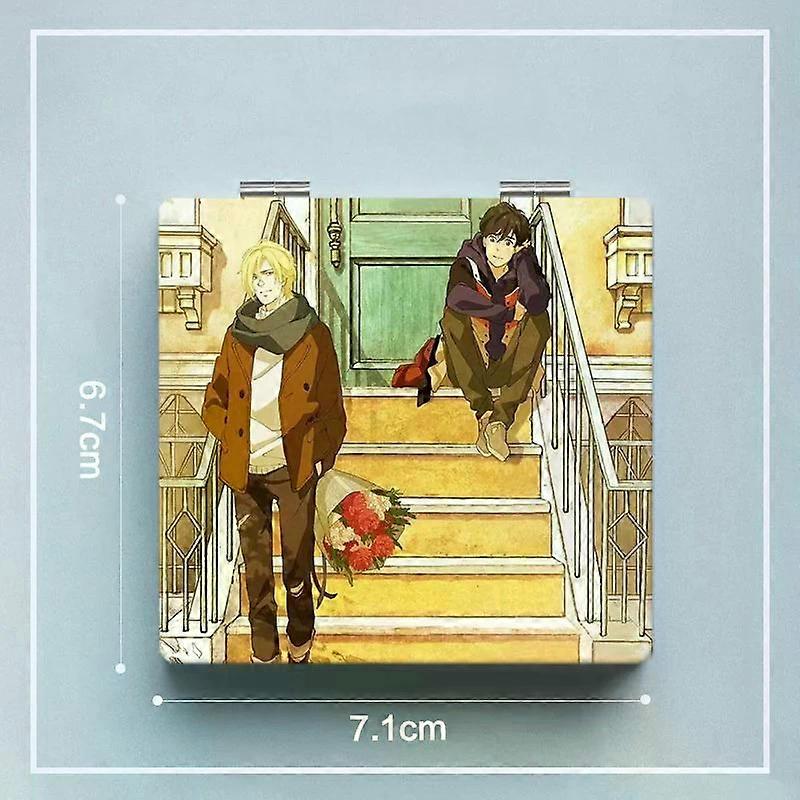 7x6cm, Banana fish, Folding Double-sided Makeup Mirror, Portable Travel, Mini Pocket, Anime Cute Girls Kids, Magnifying, Square
