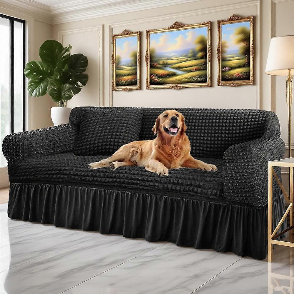 Stretch Seersuckers Sofa Cover With Skirt Washable Stretchable Sofa Slipcover Couch Cover Furniture Protector with 1 pillowcase