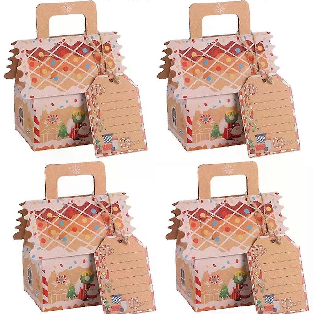 20/1Pcs Christmas Candy Box with Tag Kraft Paper Gingerbread Santa Claus Pattern Cookie Snack Packing Bags Xmas Party Home Decor