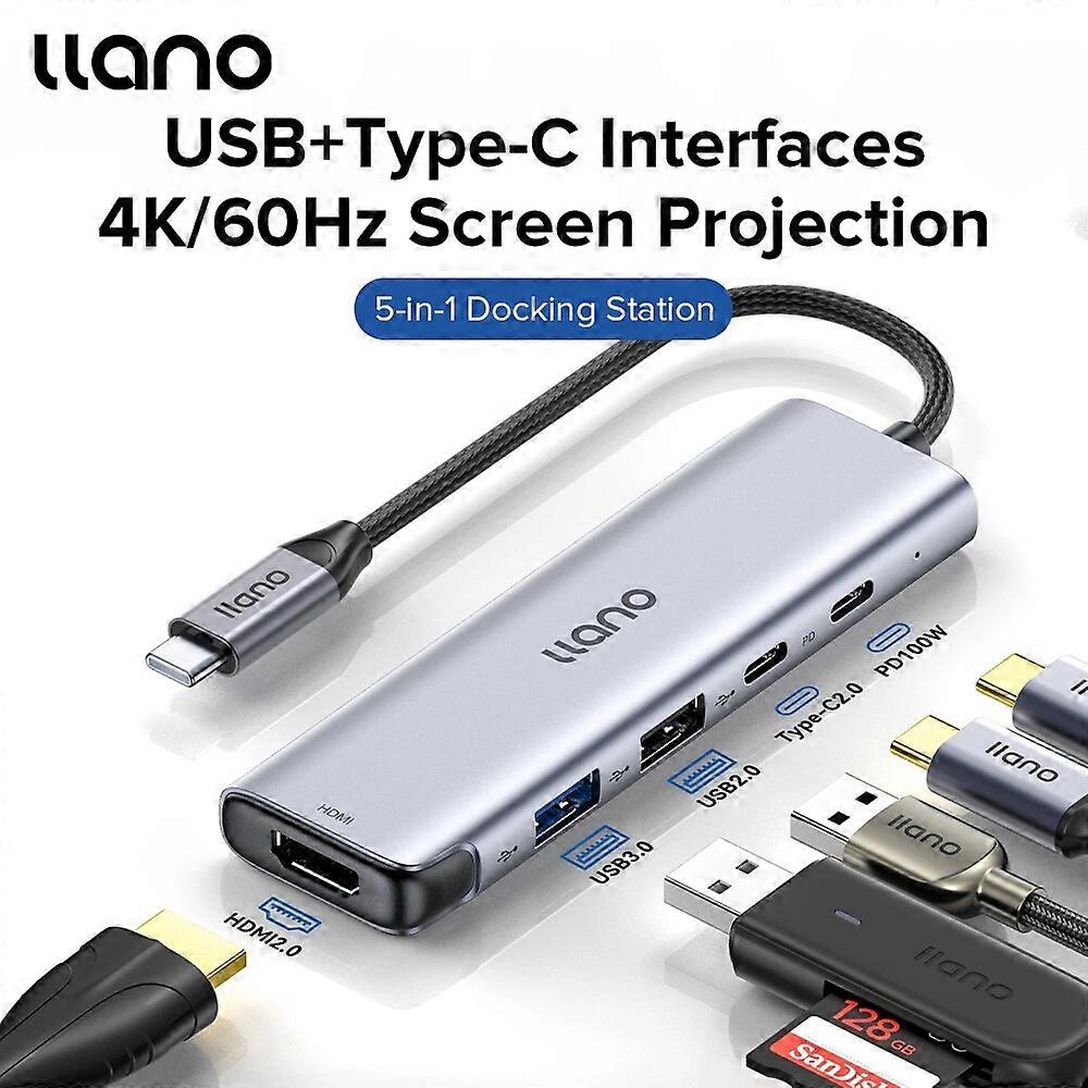 LLANO 5 In 1 USB-C Hub Notebook Docking Station USB3.0 Splitter 4k60hz Multi-interface Hdmi PD Conversion