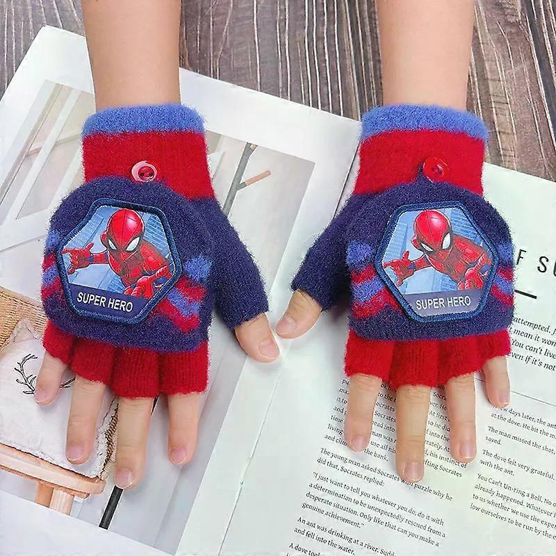 Spider Man Children Gloves Boys Cartoon Half Finger Knitted Flap Gloves Thick Winter Warmthin Gloves Writing Children Gifts
