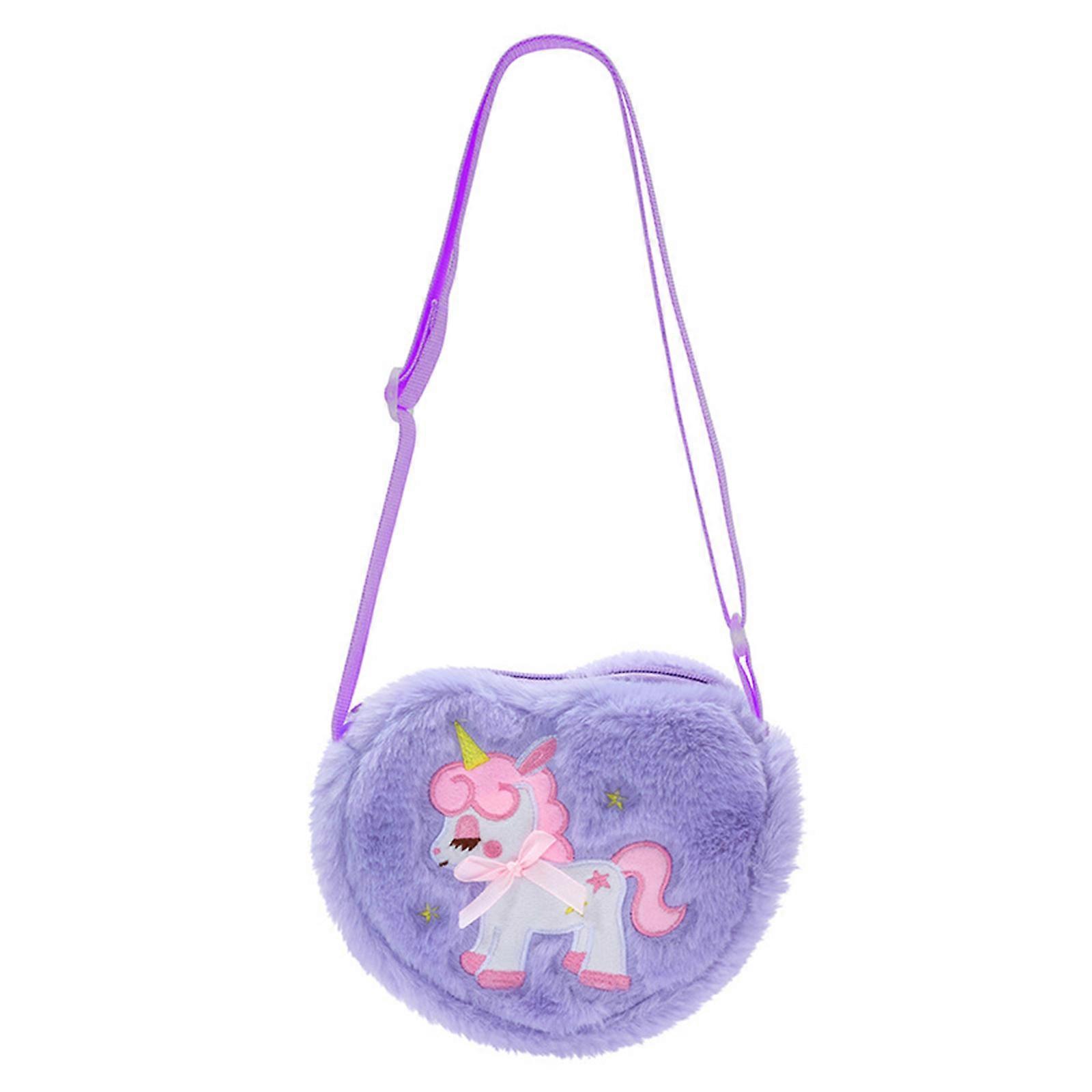 All-matching Shoulder Bag for Kids Girls Plush Cartoon Bag Heart Shape Messenger Bag Lovely Unicorns Crossbody Bag Multicolor