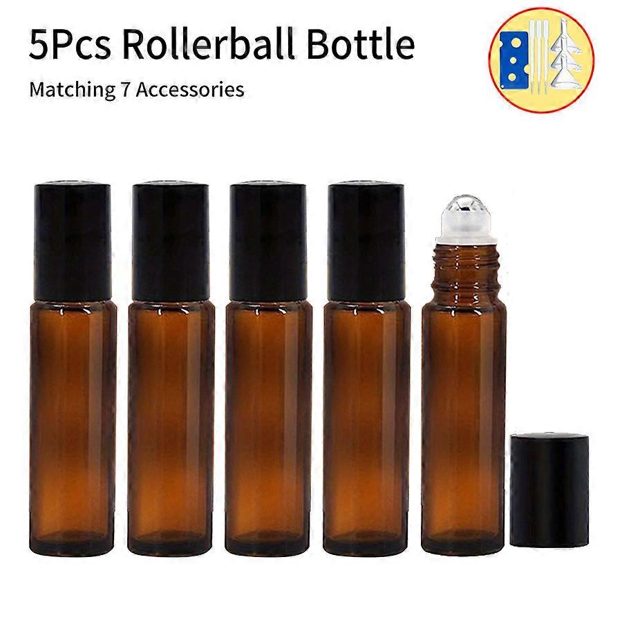5/10pcs Essential Oil Roller Bottles, 0.34oz Amber Glass Roller Bottles with Stainless Steel Roller Balls And Caps for Travel, P
