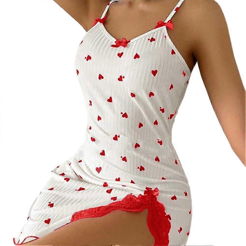 Heart Shaped Printed Slit Lace Camisole Skirt