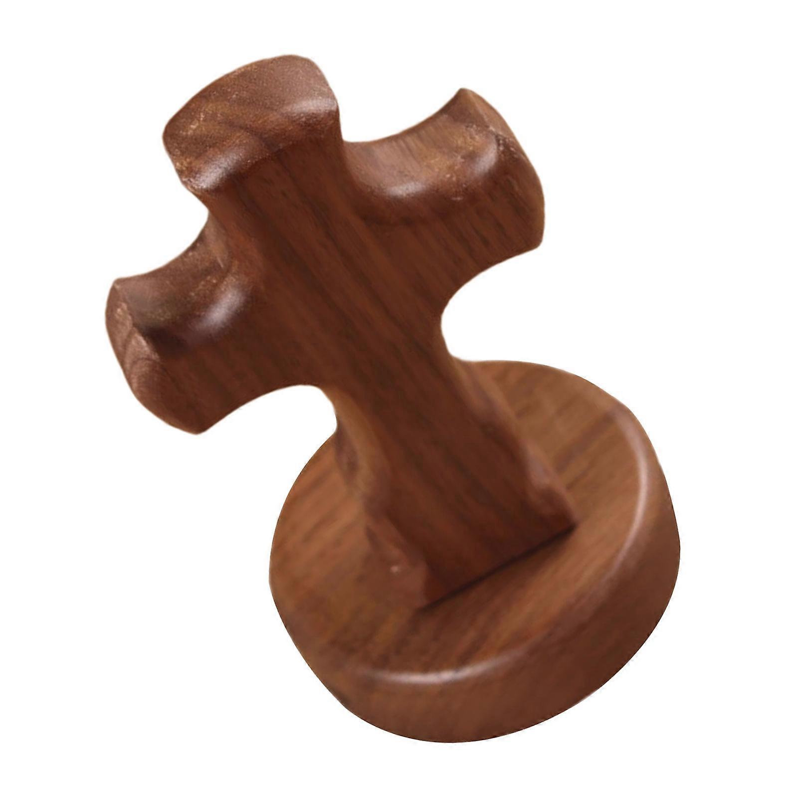 Walnut Wood Christian Standing Crosses Altar Decors with Magnetic Base for Easters Tabletop Sacred Display Ornament Multicolor