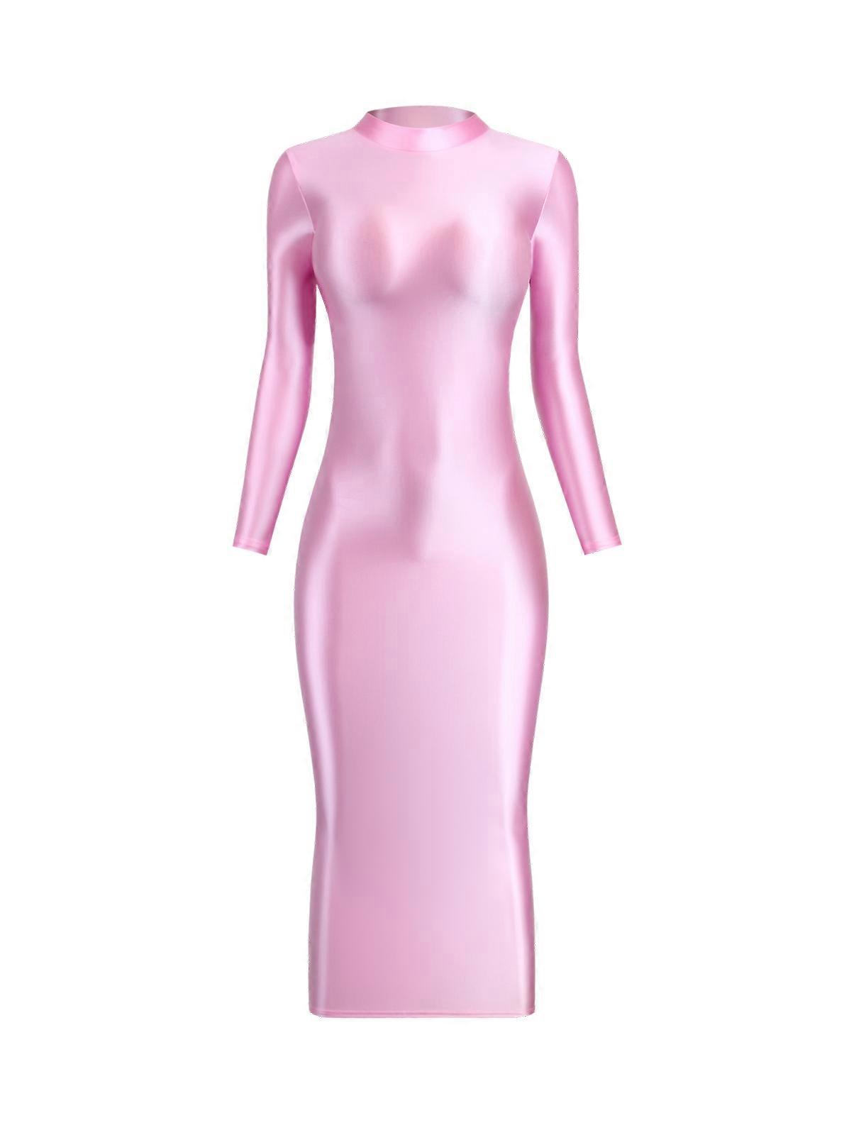 Women Sexy Glossy Dress Wrap Buttocks Bodycon Stretch High Neck Tight Long Skirt