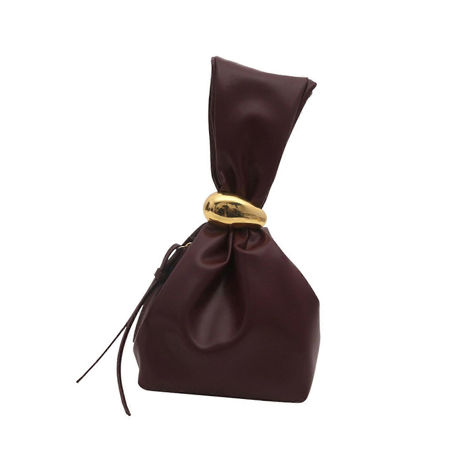 Fashionable Women's Bag Portable Pleated Bucket Bag Large Capacity PU Leather Wristlet Handbag for Various Occasion Burgundy