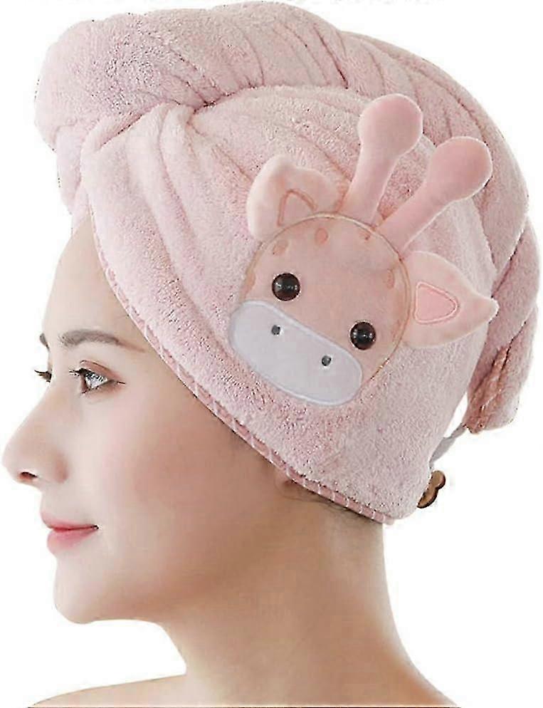 Hair Towel,microfiber Hair Drying Towels Cute Animal Shape Super Absorbent Hair Towel Quick Dry Turban Towels With Buttons For Women (2pcs,pink)